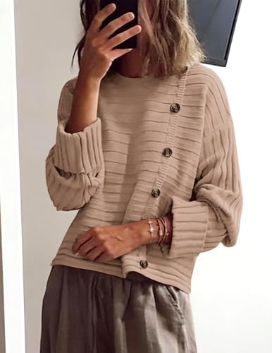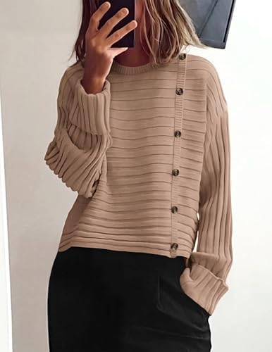 PRETTYGARDEN Womens Sweaters Fall 2024 Casual Long Sleeve Crewneck Button Loose Winter Knit Pullover Sweater Tops