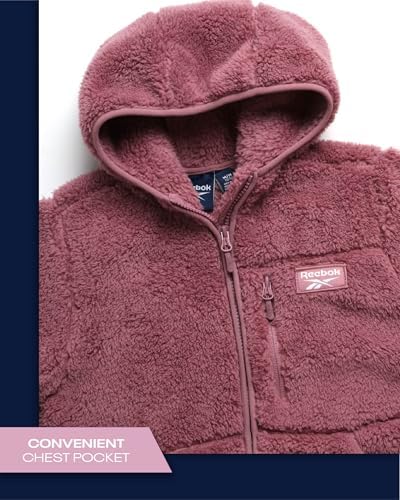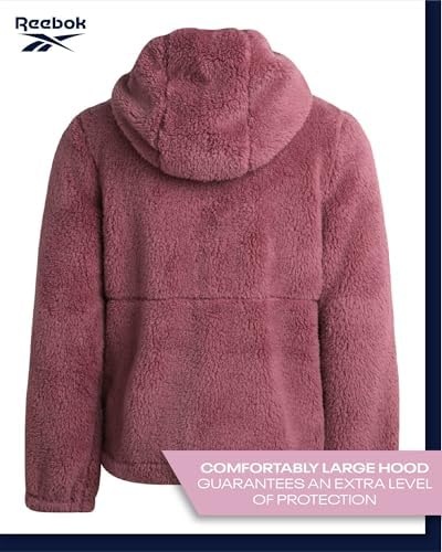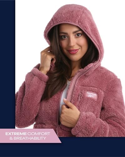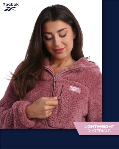 Reebok Women's Fleece Sweatshirt Jacket - Full Zip Sherpa Fur Hooded Jacket - Lightweight Teddy Coat for Women (S-XL)