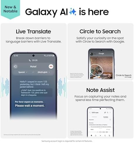 1Requires internet connection; results may vary by uniqueness, clarity and framing of circled image and related factors. 2Samsung account log-in required. Calls must be made using the native Samsung dialer. 3For text in Samsung Notes only (200-4000 characters); requires Samsung account log-in and internet connection. 4Requires Samsung account log-in and internet connection. 5Snapdragon is a product of Qualcomm Technologies, Inc. and/or its subsidiaries. Snapdragon is a trademark or registered trademark of Qualcomm Incorporated.