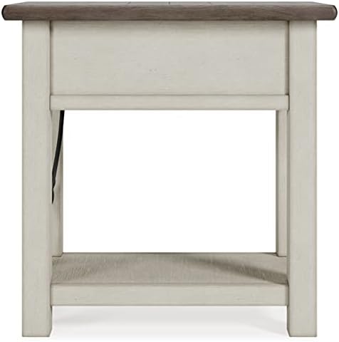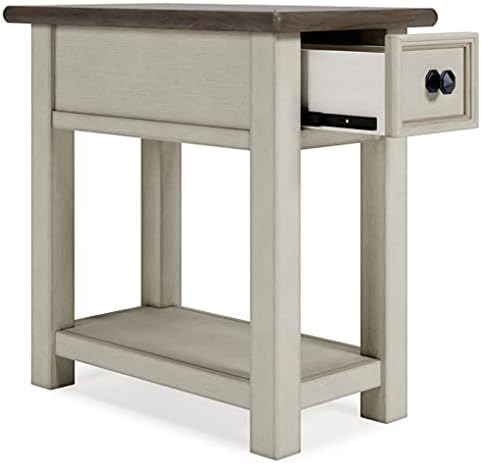 The Signature Design by Ashley Bolanburg Farmhouse Chair Side End Table is a charming addition to my living area. Its light brown and whitewash finish perfectly captures a rustic farmhouse aesthetic, enhancing the room's cozy vibe.Build Quality: Sturdy and well-crafted, it stands firm and functional, ideal for daily use.Size and Functionality: Compact yet spacious, it comfortably holds essentials like a lamp and books. The added drawer and shelf are great for extra storage.Versatility: Beyond just a side table, it works wonderfully as a nightstand or a hallway accent piece.Assembly: Assembling was a breeze with clear instructions, requiring no additional tools.Value: The table's quality and utility make it a great investment for its price.In summary, this end table is a blend of style, utility, and durability, making it a fantastic choice for anyone seeking a practical piece with a farmhouse flair.