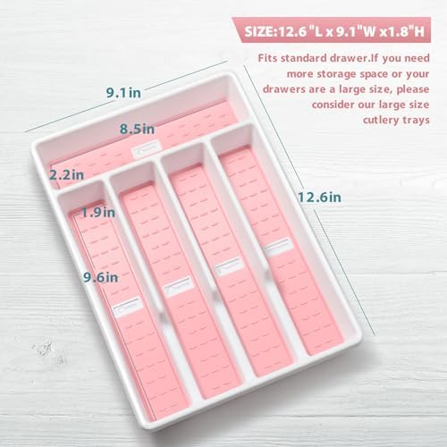 An absolutely perfect fit for my kitchen drawer.Silverware is all tidy and the bright color makes me smile and my silverware easy to see.