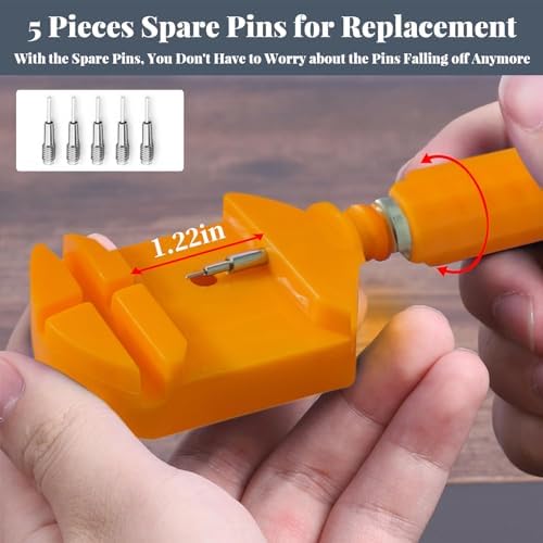 I have an older watch bracelet pin removal tool, but the pins are getting bent and it was cheaper to buy this than get replacements.I was dubious at the very low price, but this is a surprisinglyi well assembled kit.True, the tool and stand are made of lightweight plastics, but they feel durable enough.In fact, it flexes less than my old tool.It comes with 5 pins (1 in the tool, 4 extra in a storage case) and 3 punch pins, so I should get many years of use from this set.It also has a spring bar removal tool and a flat head screwdriver, which are nice additions.The little hammer is surprisingly heavy for its size, but the handle is quite thin making it a challenge to keep the hammer head straight and true while tapping on the punch pin.It has a storage case to hold everything, though it's thin and flimsy with a dodgey clasp.Still, for the very low price, it's a very good value for the amount of tools and spare pins included.