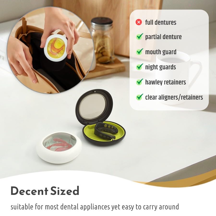 Designed for most dental appliances, suitable for clear aligner or retainer, night guard, hawley retainer, veneers, mouth guard, etc. There is also enough space for chewie and removal tool.