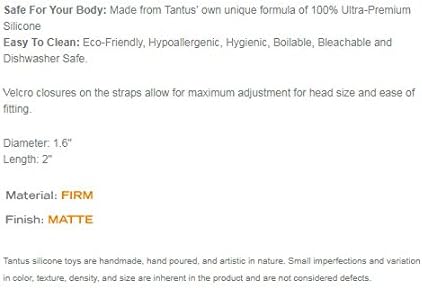 I had high hopes for this toy.Being a Tantus product I thought it would be of great quality like the other Tantus toys that I own. Sadly,that is not the case. I received it today, and noticed that the leather "flakes" black specks onto the pink silicone gag area. I do not know what that is, so I had to make sure to wash it all off well.The other issue is: the head strap does not go tight enough at all! I am a lady with not a large head, and I was hoping to get the strap tight enough to make it a toy that can be enjoyed and played with. The strap in all honesty,seems to be subpar in quality. I am not happy with the head strap. I do not know if it is truly the Tantus company selling these items on Amazon, and wonder if I got a counterfeit item perhaps?The pink portion of the toy, the main gag part is cute. It is soft, and has no smell- great for people with sensitivities to pthalates! No stink and safe.I do not know if this item is able to be returned, but I am disappointed. I was looking for a toy that was soft and such, as the main gag portion does, but it does not fit me, and again, the leather strap leaves a lot more to be desired. I cannot even put it on me because it is just too big. :(Sad because this was a Christmas gift...