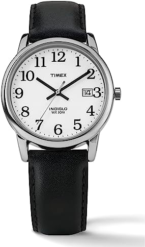 I dare you to find another watch that has all these features. I tried and this was the only watch to meet my criteria. This is a very classy, lightweight, easy to read, affordable, water-resistant, analog watch, with a night light and a day/date display.Its style is a very understated classic round face with only one side button and no phony tachometer/compass or built-up "rugged" appearance. It has a very demure chrome appearance with a leather strap which works well for everyday use at home, work, or even for a night out.Being lightweight, it does not slide up and down on your wrist like some of the heavier more "manly" looking watches do. Since it's not overly large, it also does not yell out "look at me", rather it simply does it job quietly and out of the way.It is easy to read on many levels. The numbers are large, the font is a san-serif style without any fancy end strokes, plus they are bold and black on a white background.Amazon has some of the best prices out there, but even without Amazon's great deals, this watch will still run you under $50. A great price for a rare find.Some watches at this price range are not water resistant, however, this one can be taken into the shower or while washing dishes without any worries whatsoever.I used to think digital watches were easier to read and made more sense, yet the truth is, analog watches give you a better "sense" of time, as one can see visually what percentage of a particular hour has been "used up." A digital watch simply does not give you that same feeling. Plus, with its constantly moving second hand, it is very easy to orient oneself to the passage of time.Timex's Indiglo back light is quite unique and hard to find in other watches. A simple press of the one and only side button activates this glowing light that lights up the entire watch background for a super-easy to read dial in any grade of low-light or even pitch black. I think this feature alone makes Timex watches a must have.Finally, the best feature, in my mind, is the fact that it tells you what day of the week you're on (i.e., MON, TUE, WED, etc.) as well as the date (i.e., 12, 23, 31, etc.). Yes, maybe I'm a bit forgetful, but there are times, when you just need to verify the day you're on. Especially when there are holidays and you're thinking it's Sunday, when really it's a Wednesday. Sometimes it's a regular day and you just can't remember, it happens.In summary, this watch has a brilliant set of features you are not likely to find anywhere else. I was ready to spend $300 on a watch that fit the bill, and this one did it for under $30. Hands down, the best watch you can get with all these features at this price-point and even higher ones.