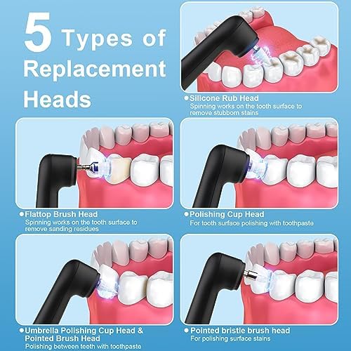 (4) Umbrella Polishing Cup Head: For interdental, behind tooth polishing with toothpaste/polishing paste (not included).