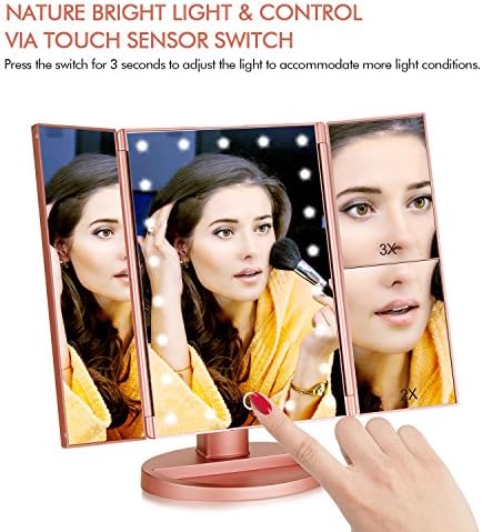 This mirrors can achieve 180° free rotation and can be fixed at any positions, making it easier to get perfect makeup. Tri-fold and detachable light mirror protect it from dust or scratches, suitable for travel.