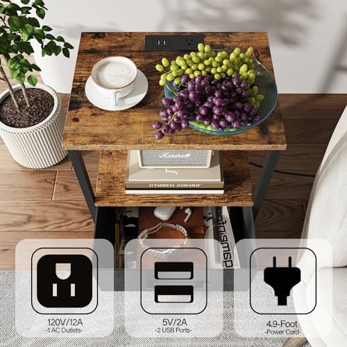 This 2- Tier side Table has 2 AC outlets, 2 USB ports, the electrical cord is 4.9 ft long.