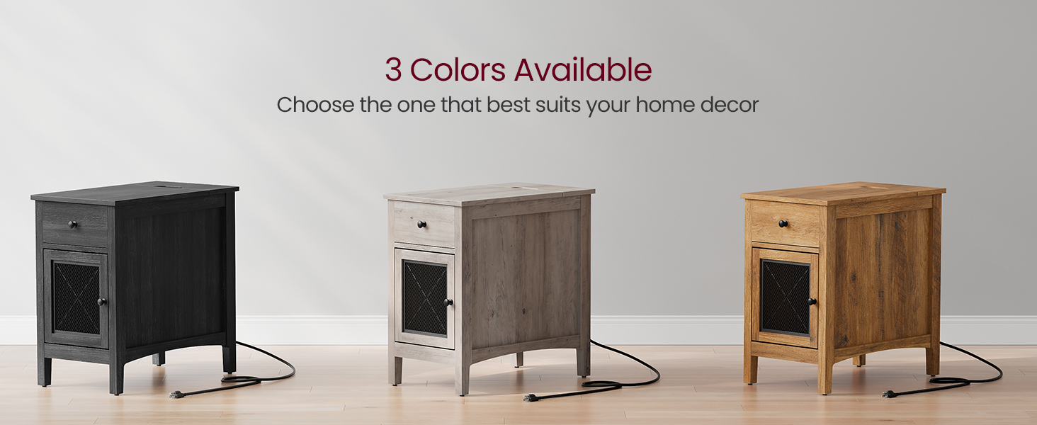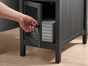 The black mesh door gives this end table a modern, industrial look while making it easy to find your items.