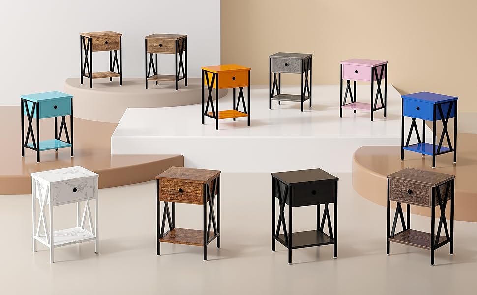 This bedside table is designed to be robust. Constructed from high-quality materials and X shape metal frame, it has a weight-bearing capacity of up to 50 pounds.