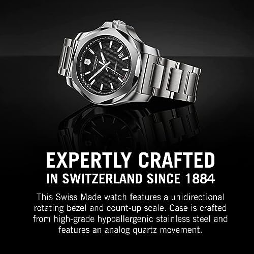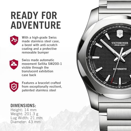 Introducing the Victorinox Alliance I.N.O.X. Mechanical Watch, a stunning timepiece that perfectly blends quality, functionality, innovation, and iconic design. With its high-grade Swiss-made stainless steel case and wood & leather bracelet, this wristwatch is built to last, ensuring exceptional durability and longevity. The Sellita SW200-1 automatic movement ensures accurate timekeeping, while the translucent exhibition case back allows you to admire the intricate mechanism at work. The impressive guilloche pattern on the dial is inspired by a Swiss Army Knife handle, and the bezel is protected by an anti-scratch coating and removable bumper, showcasing the watch's innovative design. This Swiss watch is perfect for complementing any outfit. Its sleek and timeless design makes it an iconic addition to any watch collection. Experience exceptional quality, impressive functionality, innovative design, and iconic style with the Victorinox Alliance I.N.O.X. Mechanical Watch. Whether you're looking for a reliable everyday timepiece or a stylish accessory for special occasions, this watch is sure to exceed your expectations. In 1884, Karl Elsener opened his cutler’s workshop in Ibach-Schwyz. In the early years, Karl Elsener worked to combat poverty and unemployment in the Schwyz basin, creating jobs and helping stem the flow of emigration. His spirit of solidarity, deep roots in the region, and strong commitment to solid values shaped the Victorinox company philosophy. Today, Victorinox is a global company with five product categories: Swiss army knives, household and professional knives, watches, travel gear, and fragrance. Victorinox guarantees that its products meet the highest standards. The majority of Victorinox products are manufactured in Switzerland.