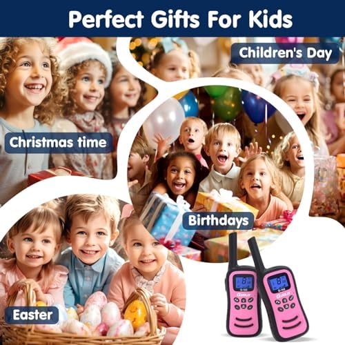 Walkie Talkies for Kids 22 Channels 2 Way Radio Toy with Backlit LCD Flashlight, 3 KMs Range for 3-12 Year Old Boys Girls Outside, Camping, Hiking (2 Pack, Pink)dummy