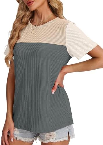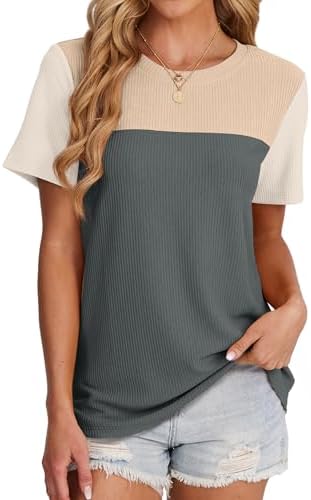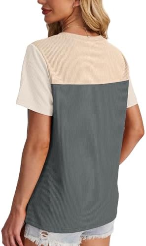 Womens Summer Tops Short Sleeve Blouses For Women Business Casual Color Block
