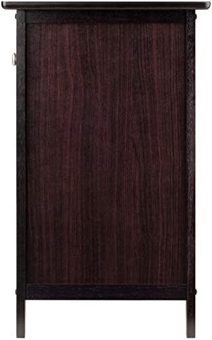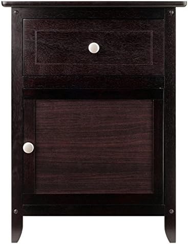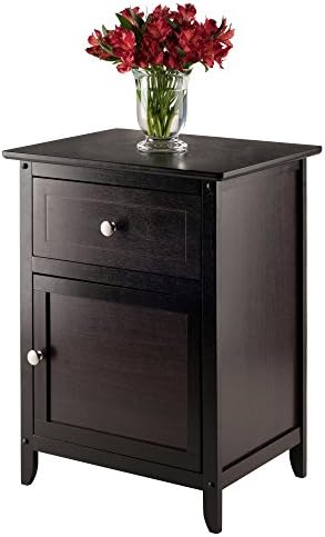 Add extra table space to a living room, den or bedroom with the versatile and ageless design of the Winsome Wood Eugene Accent Table. Whether you decide to put your alarm, lamp or family photo, the clean and simple design of this table allows it to blend well with most home decor. This Winsome classic is finished in rich espresso and adorned with two satin nickel knobs for a sticking contrast of elegance. Featuring a small pull-out drawer for storing pens, notepads, remote control and small accessories, organized and out of sight. The bottom door opens up to more storage space. Keep photo albums accessible or some of your favorite night time storybooks within reach in the spacious compartment. For larger beds, sofas and/or rooms, try adding one accent table on each end (each sold separately).