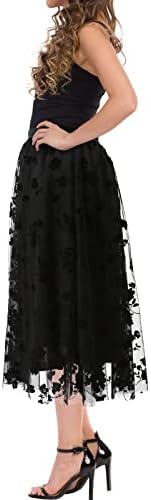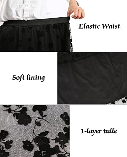 Layered Mesh Midi Skirt Women's Tulle Skirt Double-Layered Mesh Midi Skirt Elastic High Waist Layered Skirt Floral Print Mesh A-Line Midi Skirt Formal High Low Asymmetrical Midi Tea-Length Elastic Waist Tutu Skirts Name: A Line Layered Tutu Skirt High Waist Elastic Mesh Tulle Mesh Midi Skirt for Wedding Party Features of Midi Long Plaid Tulle Skirt: Material: soft tulle/100% polyester Advantages: Soft and smooth, lightweight and airy, comfortable Styles: 3D posy trimming, elegant, vintage, stunning Length: Tea-length of 80cm(31") Size: One size with elastic waist for 23-39inch/60-100cm Occasion: evening, prom, formal, informal, party, vocation, dance, bridesmaid, homecoming, performance and casual wear. Layers: The default is 2 layers: light and comfortable, make you feel relaxed every time, suitable for different ages. The deluxe 3 layers are emphasized in color choice: one layer solid, one layer of floral lace and one layer of lining Match: camisole, tank top, T-shirt, blouse, bikini, sandals, shirt, high heels Notes for the Double-Layered Mesh Midi Skirt: 1. The true color of the skirt may be slightly different from the pictures shown on website caused by monitor and light brightness. 2. We will never stop to pursuit your satisfaction with our tulle skirt