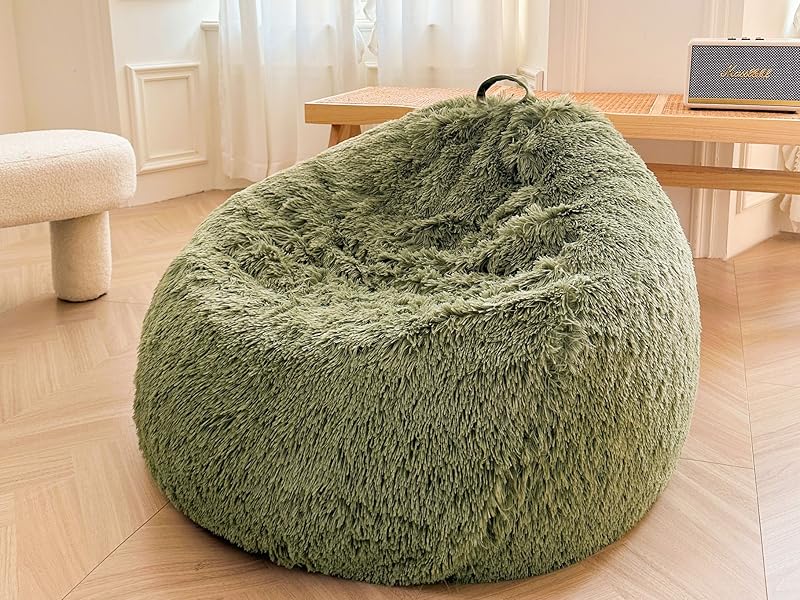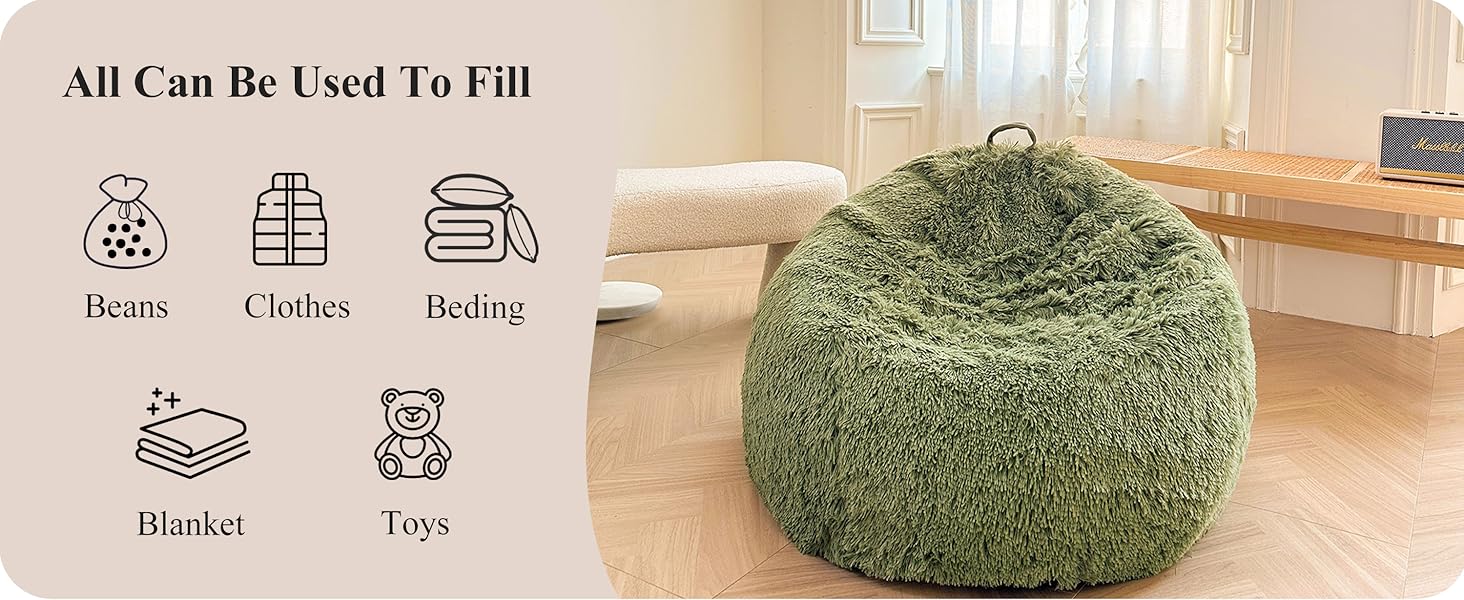 This plush and cozy fluffy bean bag chair cover is the perfect place to store all your favorite stuffed animals. Made of ultra soft faux fur, this fluffy storage bag feels luxurious to the touch. Kids and teens will love lounging with friends in this oversized bean bag too.