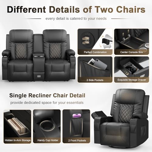 YONISEE Living Room Furniture Set, Loveseat Recliner and 2PC Massage Recliner Chair, Luxury Reclining Sofa 3PC Set for Living Room (2+1+1)