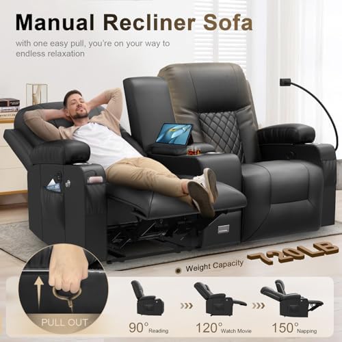 First of all, the loveseat sofa comes in 3 boxes. As mentioned by the seller, these boxes may not arrive at the same time, but they will all get to you.Second, assembly was very easy and didn't take a lot of time. The size is perfect for two adults with a center console to place things.I bought this to provide a place for our guests to sit and all were pleased with the extra leg extension, charging feature and cell phone holder. The price is reasonable for all that it features, thank you.