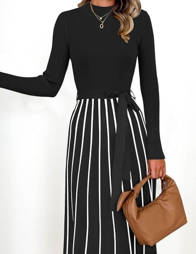 ZESICA Women's Ribbed Knit Tie Waist Dress