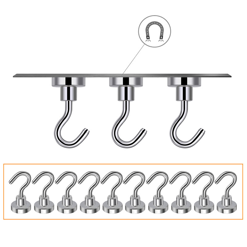 10 Pcs D20mm 25mm 32mm 36mm 40mm 42mm 46mm 48mm Magnetic Hooks Heavy Duty Wall Hooks Hanger Super Strong Neodymium Magnet Hooks