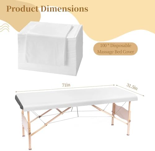 100PCS Disposable Massage Table Sheets, 71” x 31.5” Disposable Massage Bed Covers, Breathable Non-Woven Fabric Tattoo Bed Sheets, Single Use Hygiene Sheet for SPA Centers, Beauty Salons, Hotels