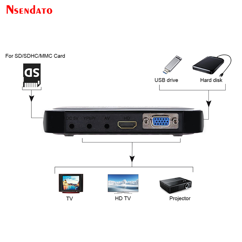 1080P HD Media Video player Center Surpport mkv H.264 with VGA HD USB AV MMC/SD Port with Remote Control