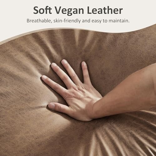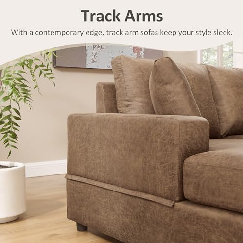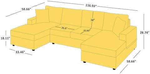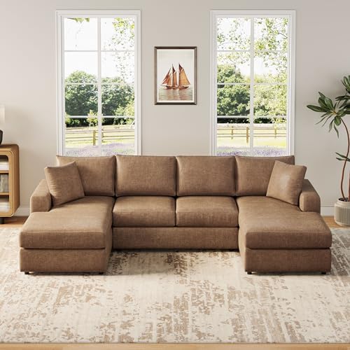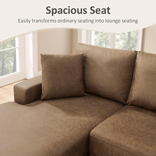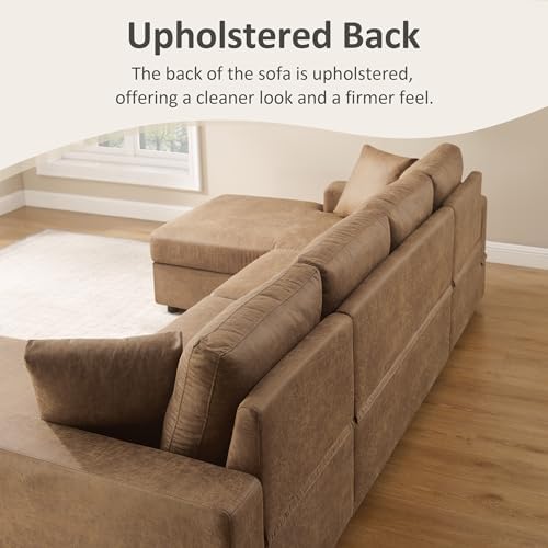 116'' U Shaped Sectional Sofa Couch, Faux Leather Modern Cozy Jumbo Size 6-Seater Sofa, Double Chaise Longue, Light Brown