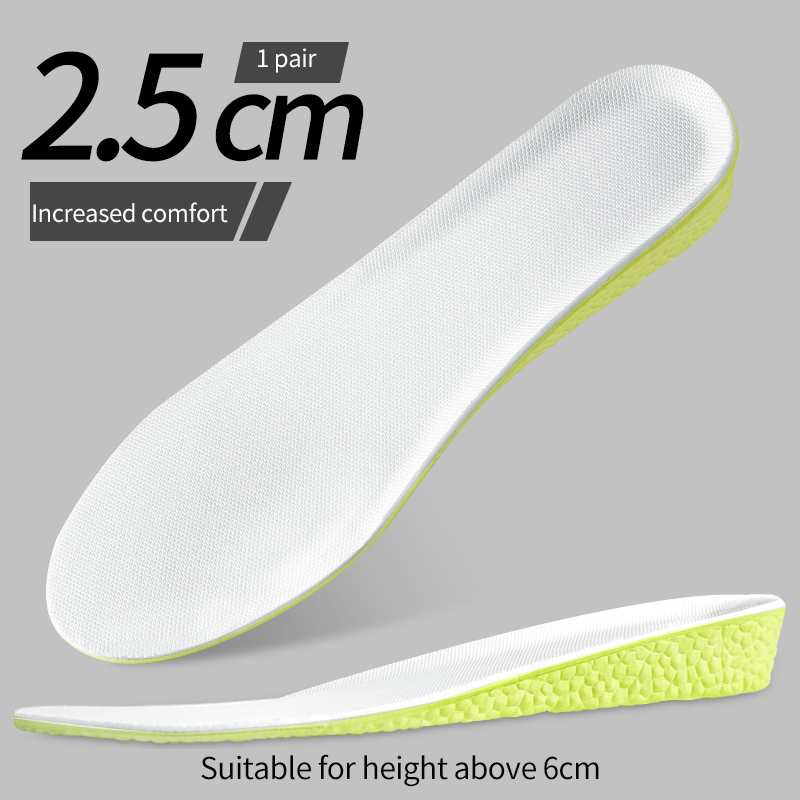 1.5-3.5cm Invisible Height Increase Insoles Green Memory Foam Shoes Sole Pad Breathable Comfortable for Men Women Feet Care