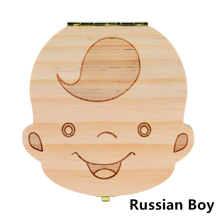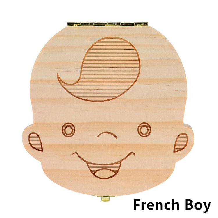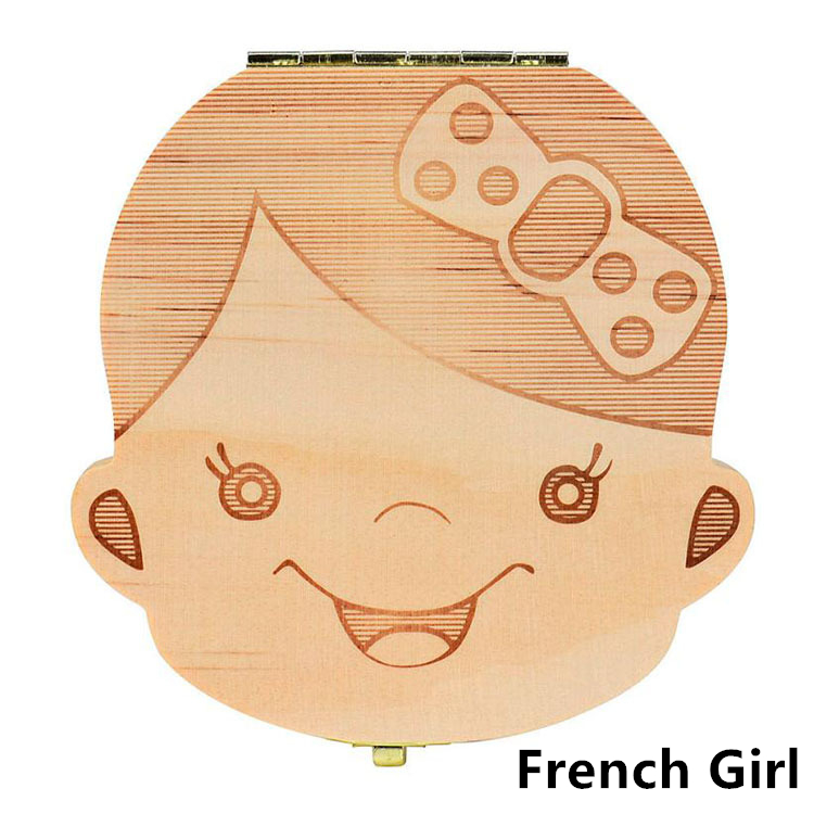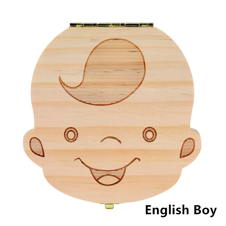 1PC Spanish English Baby Wood Tooth Box Organizer Milk Teeth Storage Collect Teeth Umbilical Cord Save Gifts for Kids Girls