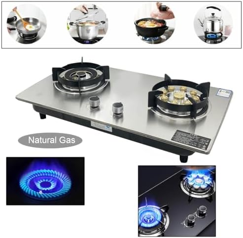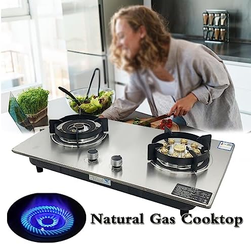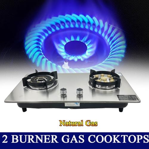 Gas Cooktop 2 Burners Drop-in Natural Gas Cooker Gas Stove NG Stainless Steel Easy to Clean for RVs Home