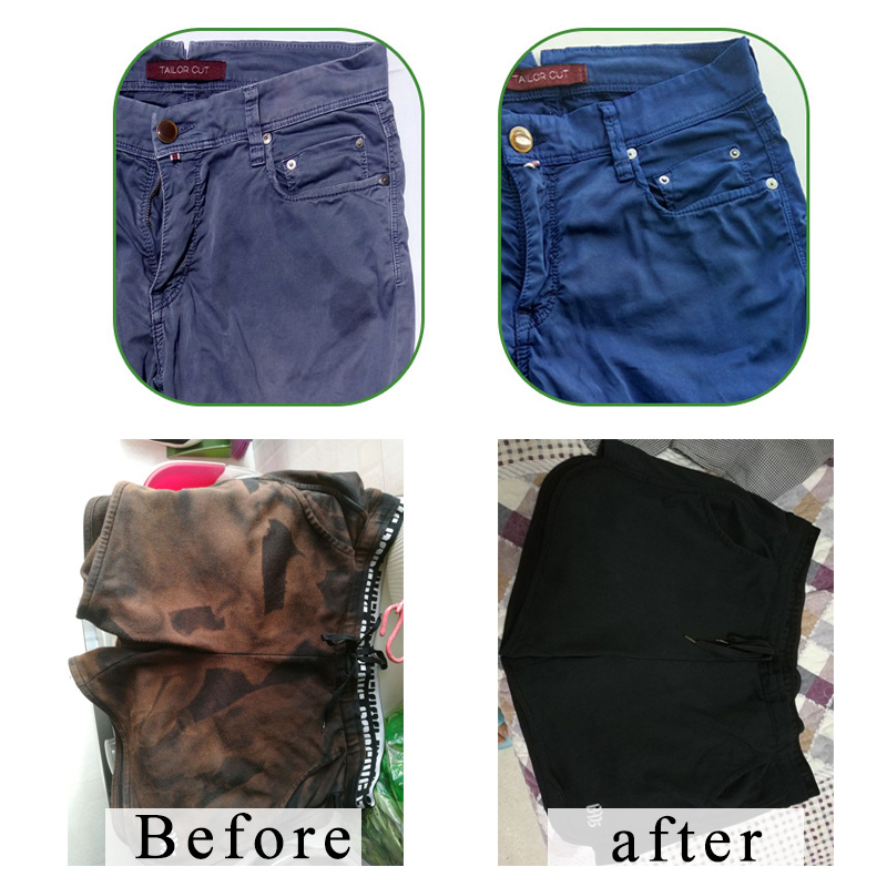 Dyeing method: The dye is dissolved and poured into boiling water. Add 5 times the salt to dilute the dye evenly. Put in the clothes and heat up to a boil and keep turning for 20-30 minutes. Take out the water and wash three or four times before drying.