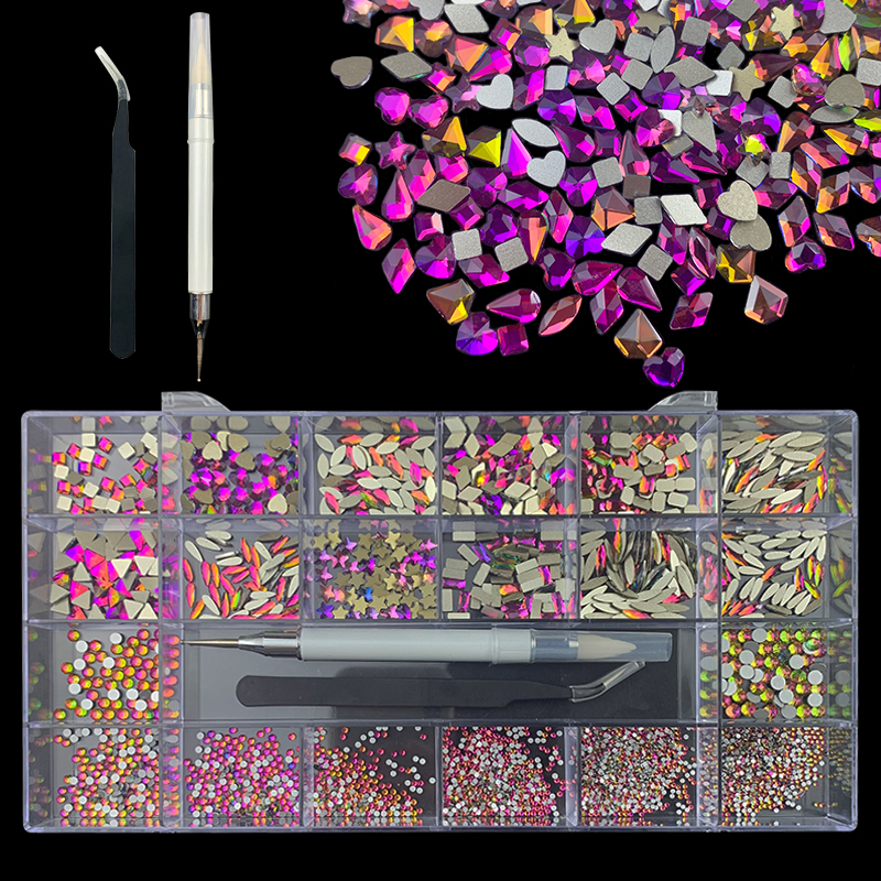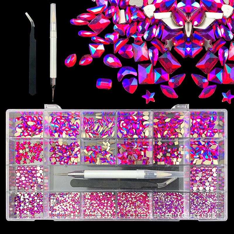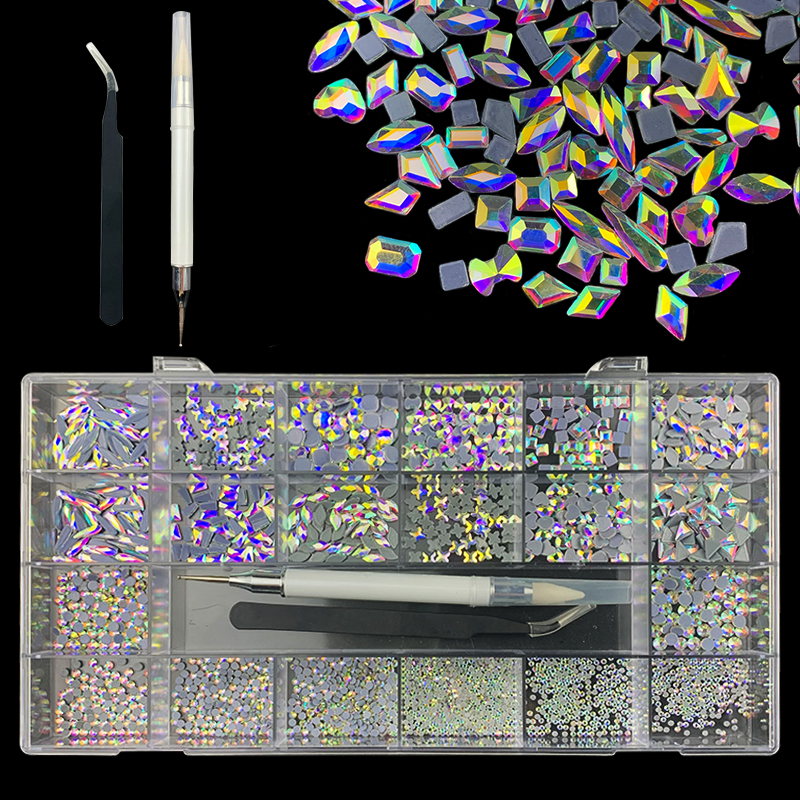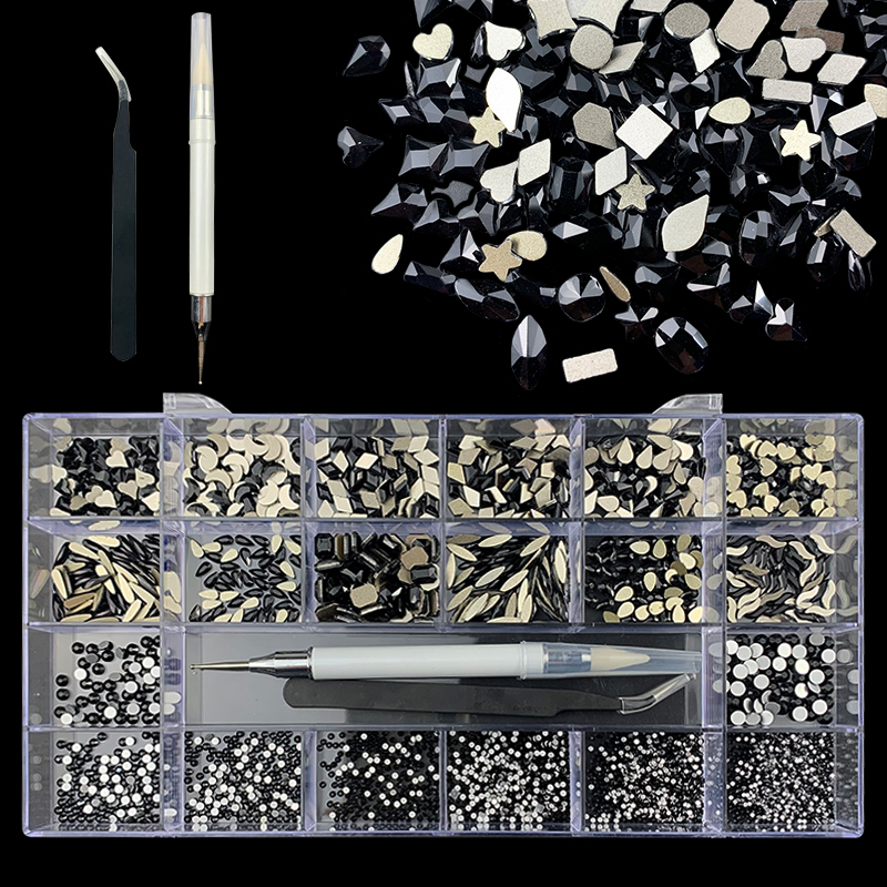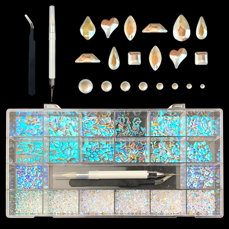 2). 2740pcs Rhinestone set: 240pcs(20x12) k9 crystal glass rhinestones, 2500pcs mix sizes round rhinestones,1pcs wax pen(Crystal or white), 1pcs tweezers for free