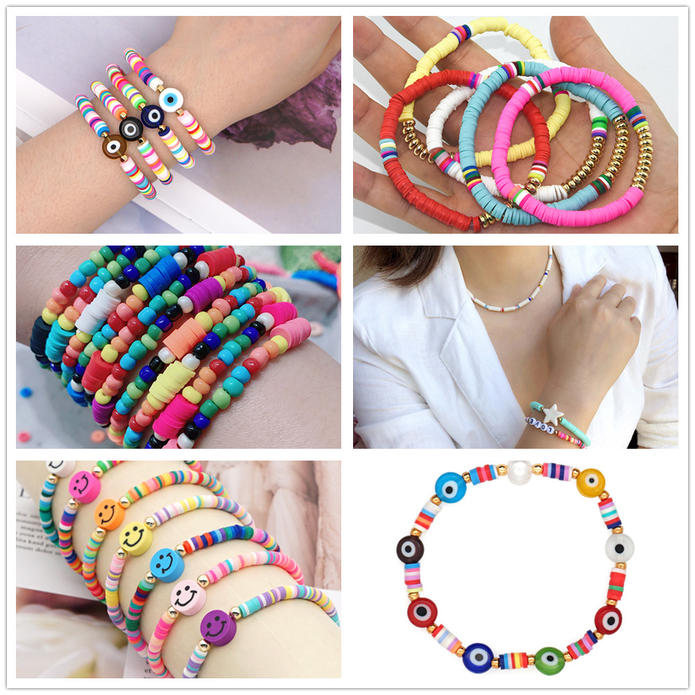 330pcs/bag 6mm Flat Round Polymer Clay Beads Chip Disk Loose Spacer Handmade Boho Slice Beads For DIY Jewelry Making Bracelets