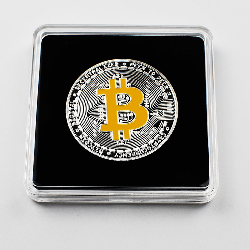 40mm Gold Bitcoin Coin with Acrylic Square Case Litecoin Eth XRP Doge IOTA Cardano ADA FIL Shiba Cryptocurrency Metal coin