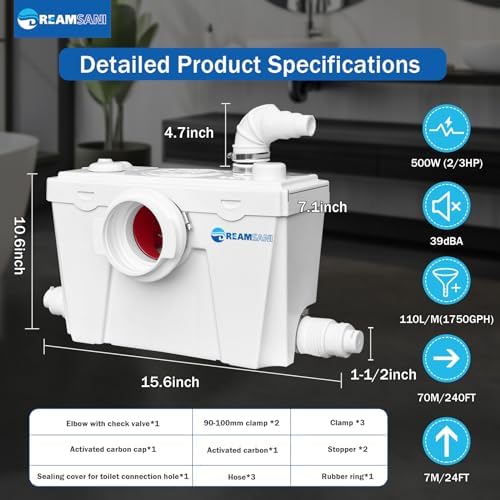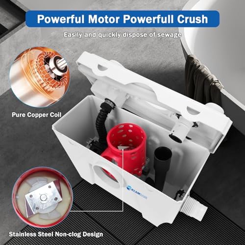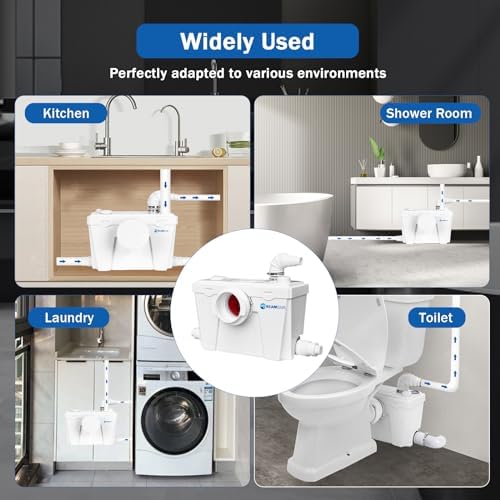 This pump is very powerful and runs slightly quieter than the pump it replaced.It has multiple connections that allow you to install a fully functioning bathroom in areas that would otherwise need major modifications for proper waste disposal.The unit can be installed directly behind a toilet with exposed drainage plumbing or behind a wall to conceal the plumbing.Regardless of the pump installation location, a rear discharge toilet is the only toilet that will work with this system, otherwise any versions of sinks, tubs, or showers will work with regard to proper drainage slope toward the pump.There is an access panel on the top of the pump to clean out any clogs if any should happen.The unique thing about this pump is that there are two possible discharge ports on this pump vs. only one discharge option on many similar pumps.I feel that is a very powerful and quality pump unit.If you are looking to add a bathroom an need a below grade drainage solution that doesn't require demolishing floors, this is the pump you want.