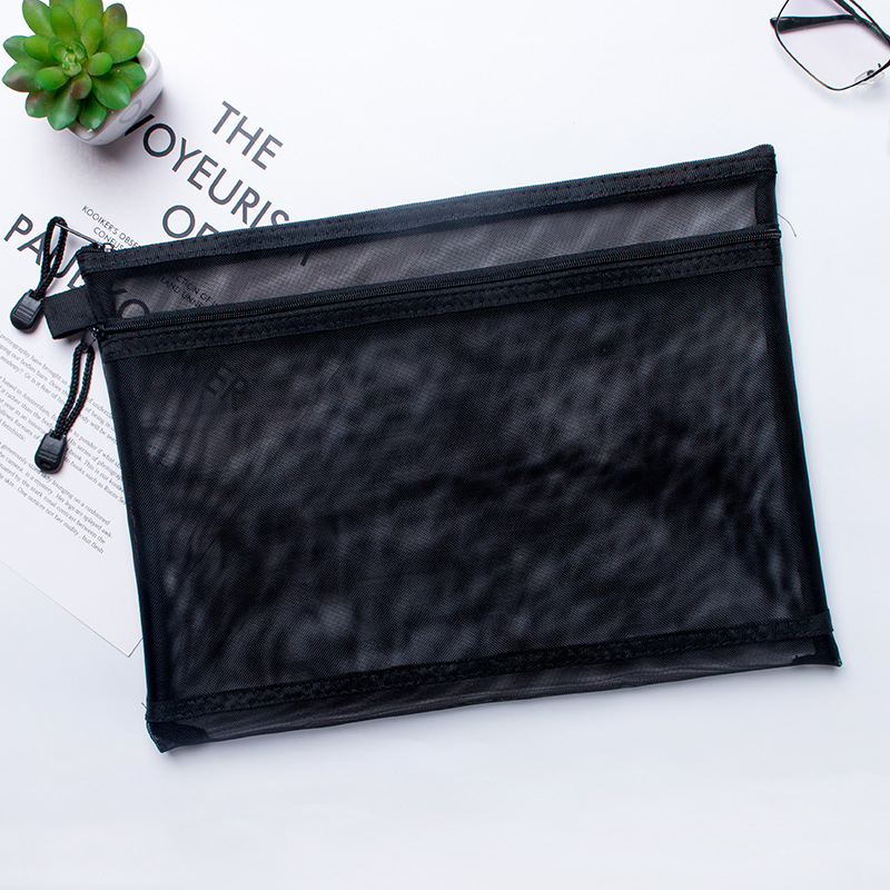 5pcs Double Layer Mesh Document Bag A4 A5 A6 File Folder Bag Pen Organizer Stationery Storage Cosmetic Bag Makeup Storage