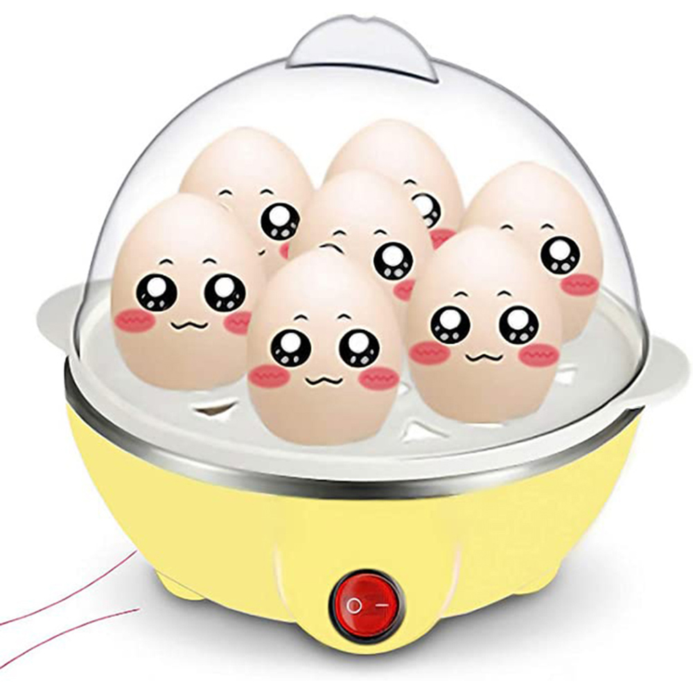 This egg pan tray can hold 7 eggs. It can cook soft medium or hard eggs. Just change the amount of water to eat delicious eggs. It can cook breakfast for 2-3 people.