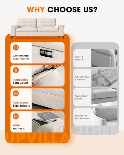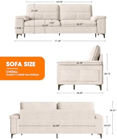 71.25" Modern Sofa Couch for Living Room,Deep Seat Sleeper Sofa with 8”Cushion,Comfy 2-Seater Chenille Loveseat Sofa with Convertible Armrest,Removable Sofa Cover,High Leg (Beige)