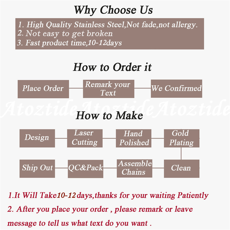 if you have special request about the name width and height,or the length of the chain ,you could also leave a message to us .
