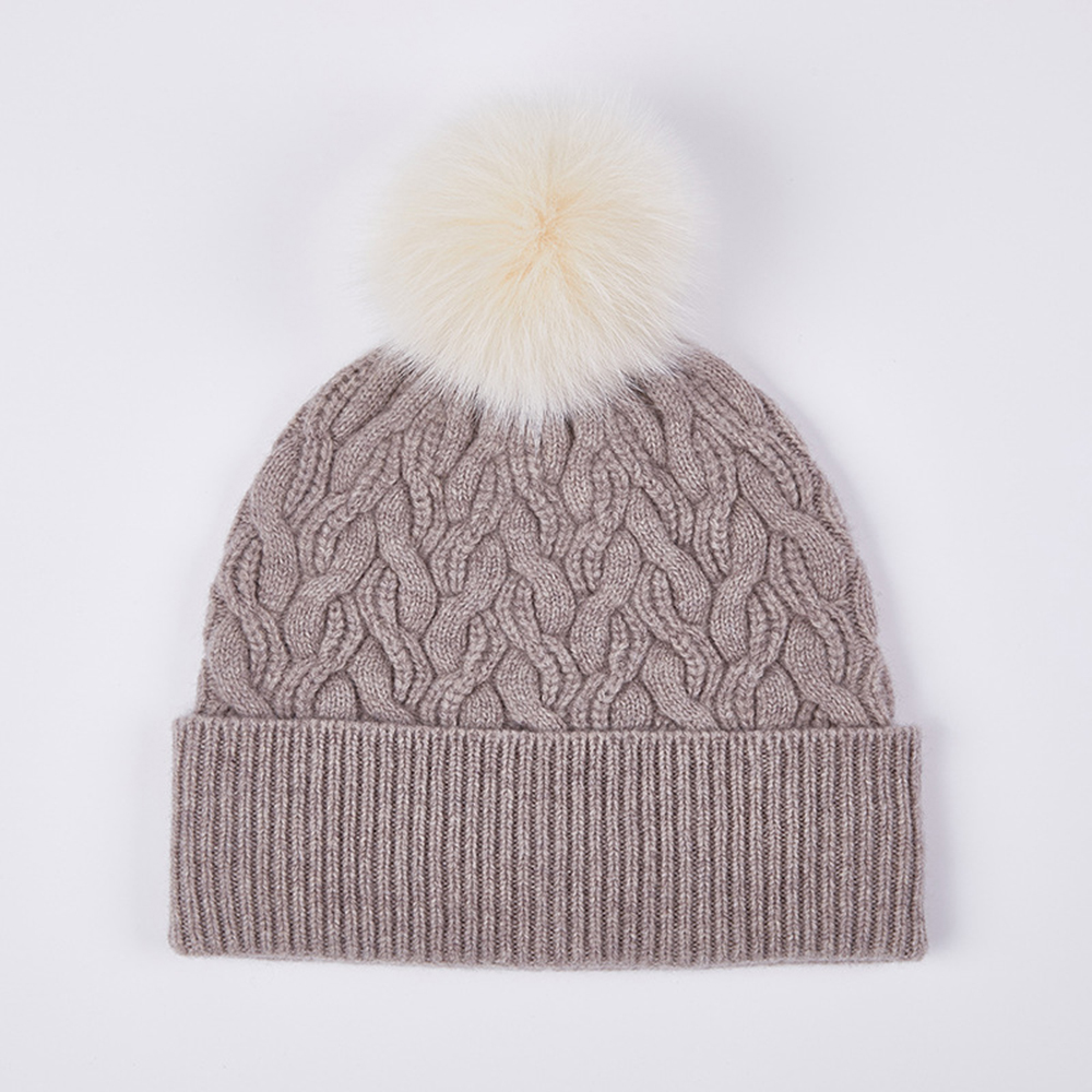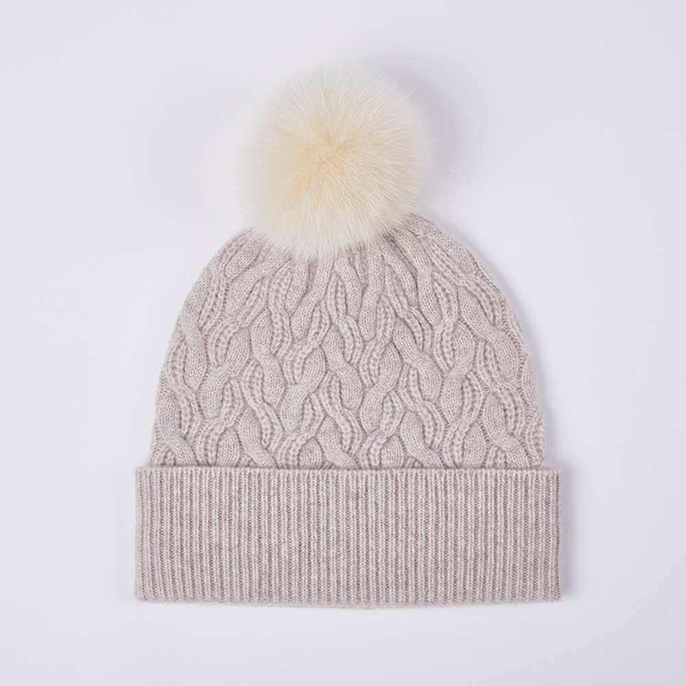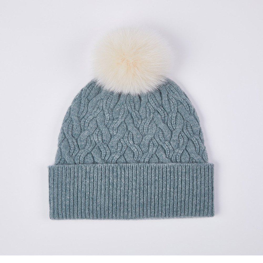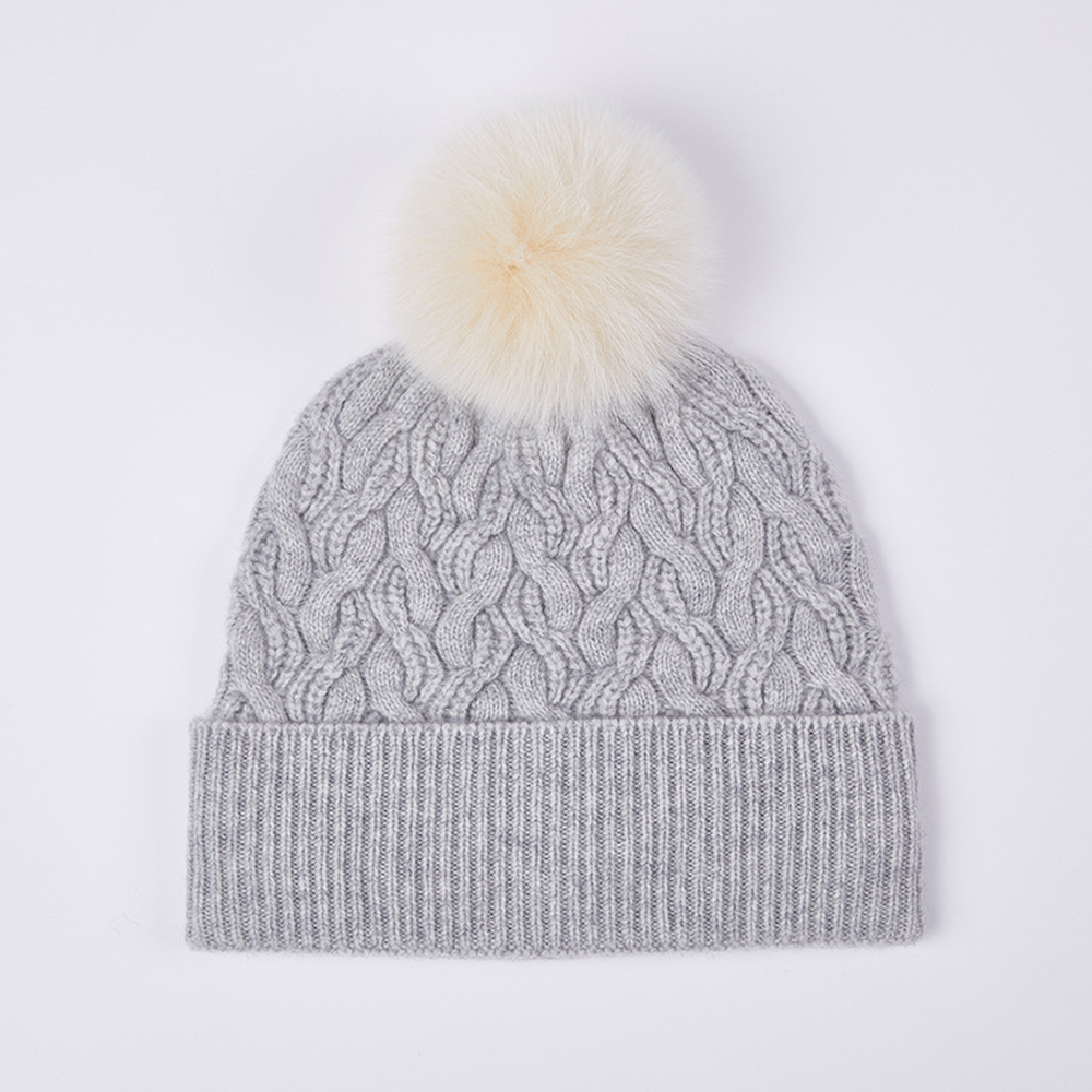 Australian Merino Wool Hat with Real Fox Fur Pompom Women Winter Knit Slouchy Beanie Cashmere Skullies Hats For Girls