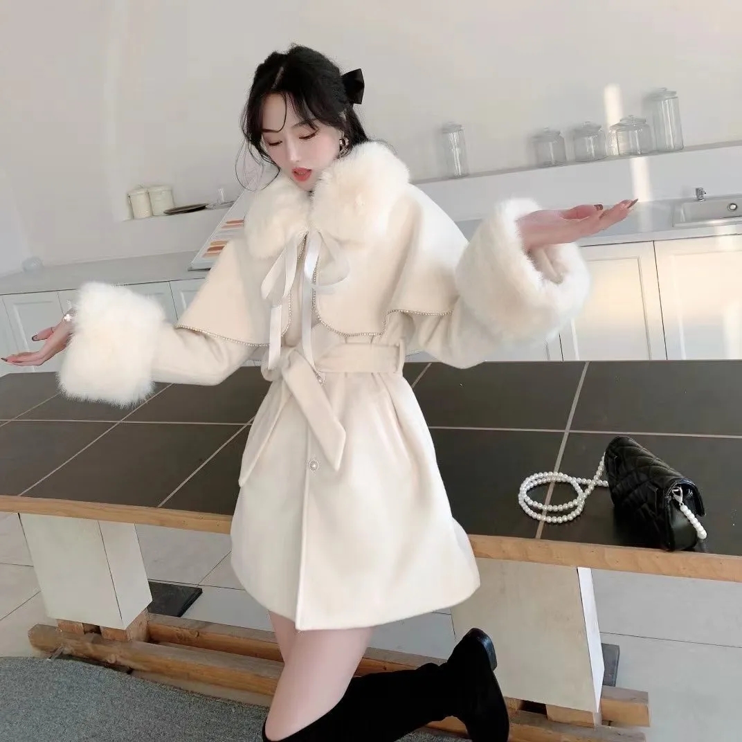 Autumn Warm Cloaks Windbreakers Elegant Women's Jackets Winter Cashmere Wind Coat Dresses Clothing