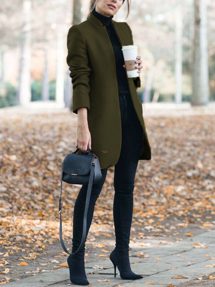 Autumn and Winter Women's Mid-length Solid Color Stand-up Collar Slim Woolen Coat Casual Elegant Office Women Coat