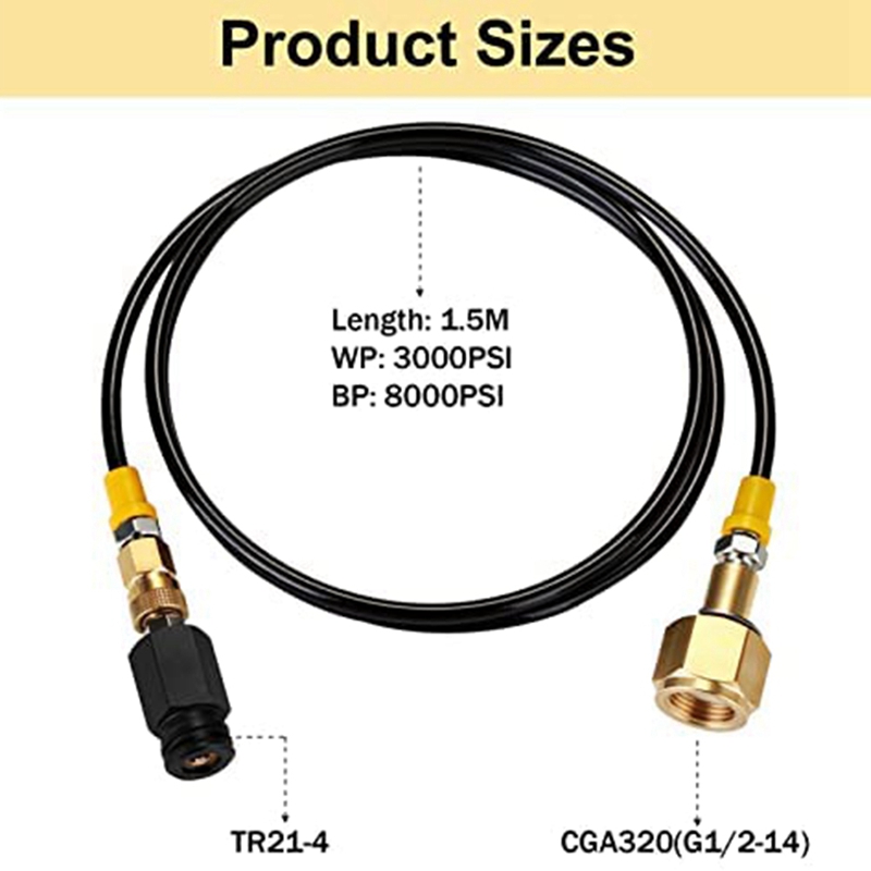 PREMIUM QUALITY : The standard CGA-320 external hose is made of high-quality nylon + TPU + fiber material, which has the advantages of anti-rust, anti-corrosion, wear resistance, anti-aging, not easy to deform, etc. Through the upgrade design, the air tightness is improved and the problems of tube explosion and tube expansion are avoided. Working pressure meets 4500 psi.