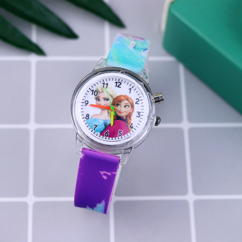 Cartoon Flash Light Girls Watches Kids with Bracelet Silicone Strap Princess Elsa Children Watches Clock reloj infantil