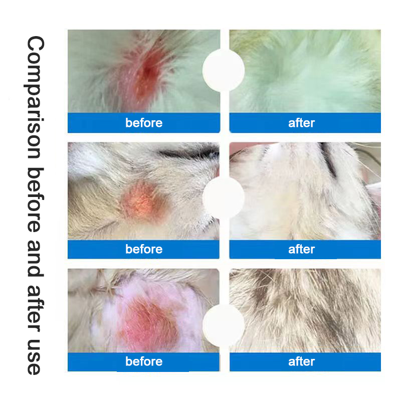 1. 15cm away from the pet, spray evenly on the pet's fur