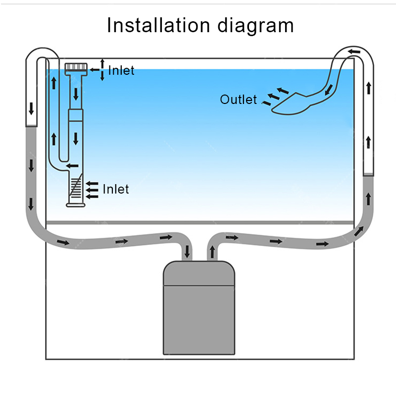 Skimmer lily Inflow pipe will auto adjust with the water level. Surface skimmer effectively remove the dirty film on top of the water. Water surface flow rate can be adjusted by rotating the bottom part.