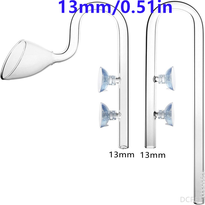 Clear Glass Lily Pipe Outflow and Skimmer Inflow With Suction Cup 13mm 17mm For Aquarium Planted Fish Tank Aquatic Filter System