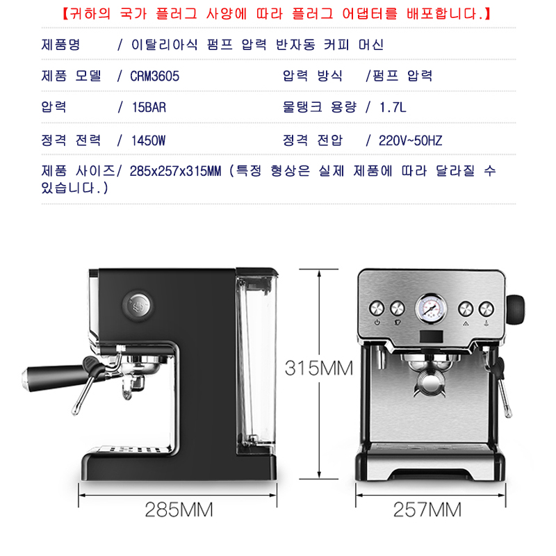 Crm3605 Coffee Machine 15bar Italian Semi-automatic Household Coffee Maker Expresso Maker With Cappuccino Latte and Mocha 220V