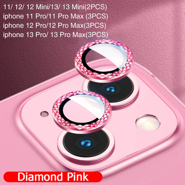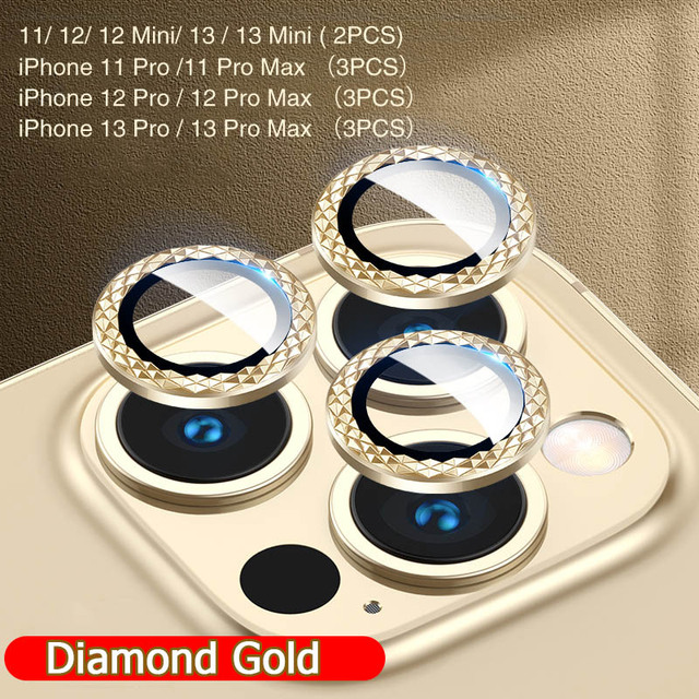 Diamond Glitter Camera Lens Protector On For iPhone 13 12 11Pro Max Mini Fully Protect Camera Metal Ring Lens Glass Protect Cap