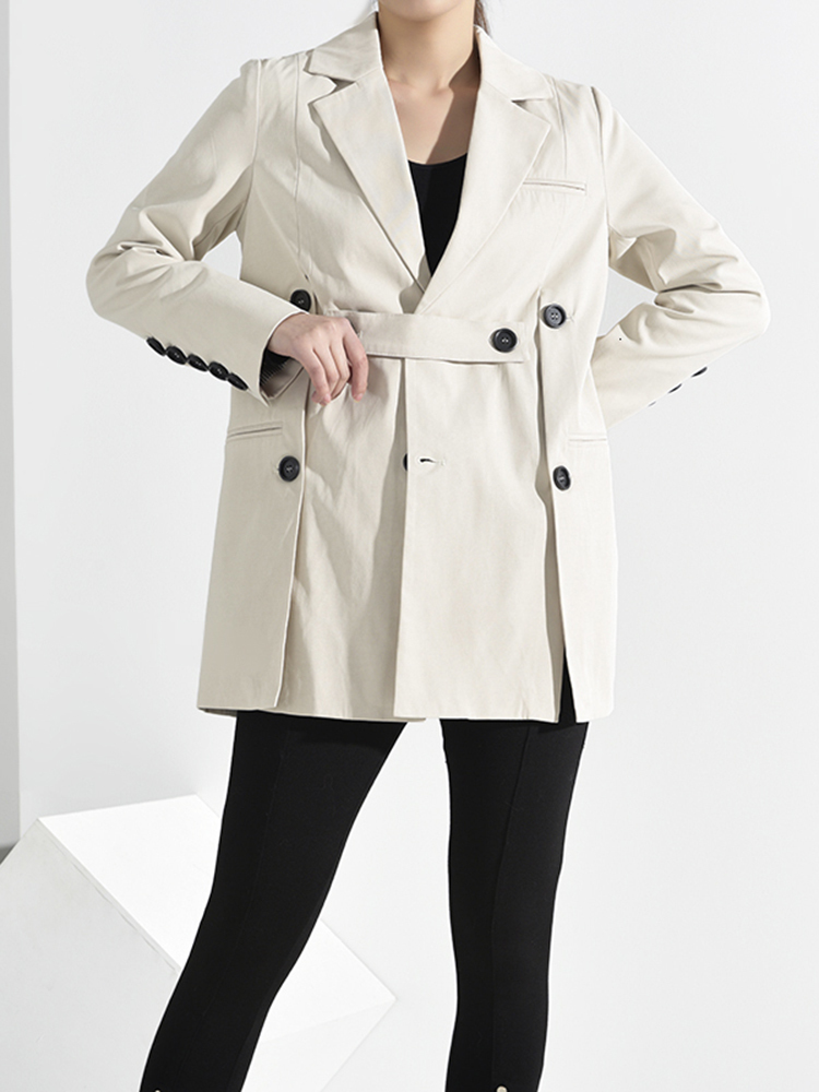 [EAM] Loose Fit Button Split Temperament Jacket Lapel Long Sleeve Women Coat Tide Spring Autumn JQ29000